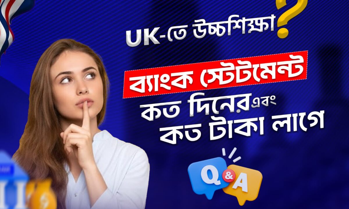 UK-তে উচ্চশিক্ষার স্বপ্ন দেখছেন? তাহলে ব্যাংক স্টেটমেন্ট সম্পর্কে স্বচ্ছ ধারণা রাখা জরুরি। নিয়ম অনুযায়ী, ভিসার আবেদনের আগে আপনার অ্যাকাউন্টে অন্তত ২৮-৩০ লক্ষ টাকা (টিউশন ফি + লিভিং কস্ট) টানা ২৮ দিন জমা থাকতে হবে।